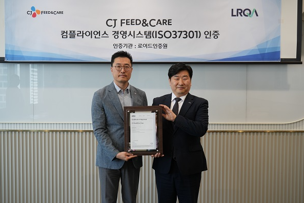 5월 3일 CJ 피드앤케어 을지로 본사에서 규범준수경영시스템 ISO37001 인증 획득을 축하하는 인증수여식이 진행되었습니다.