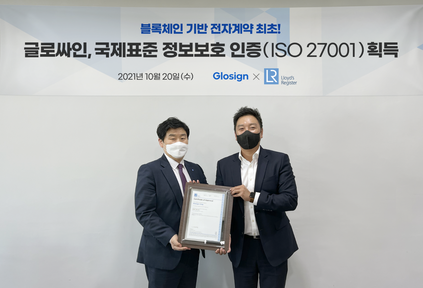 글로싸인, 블록체인 기반 전자계약 최초 ISO 27001 인증 취득.